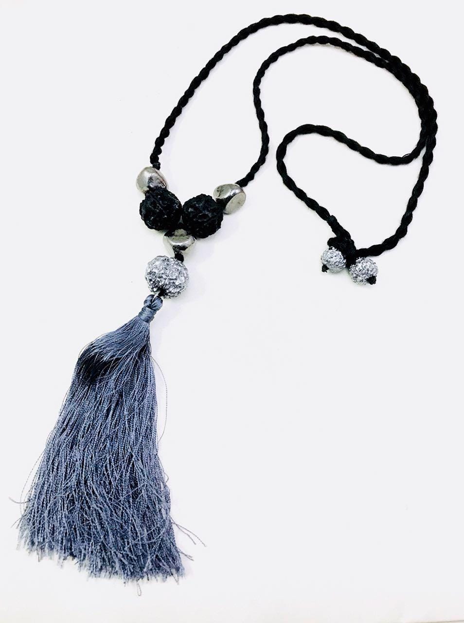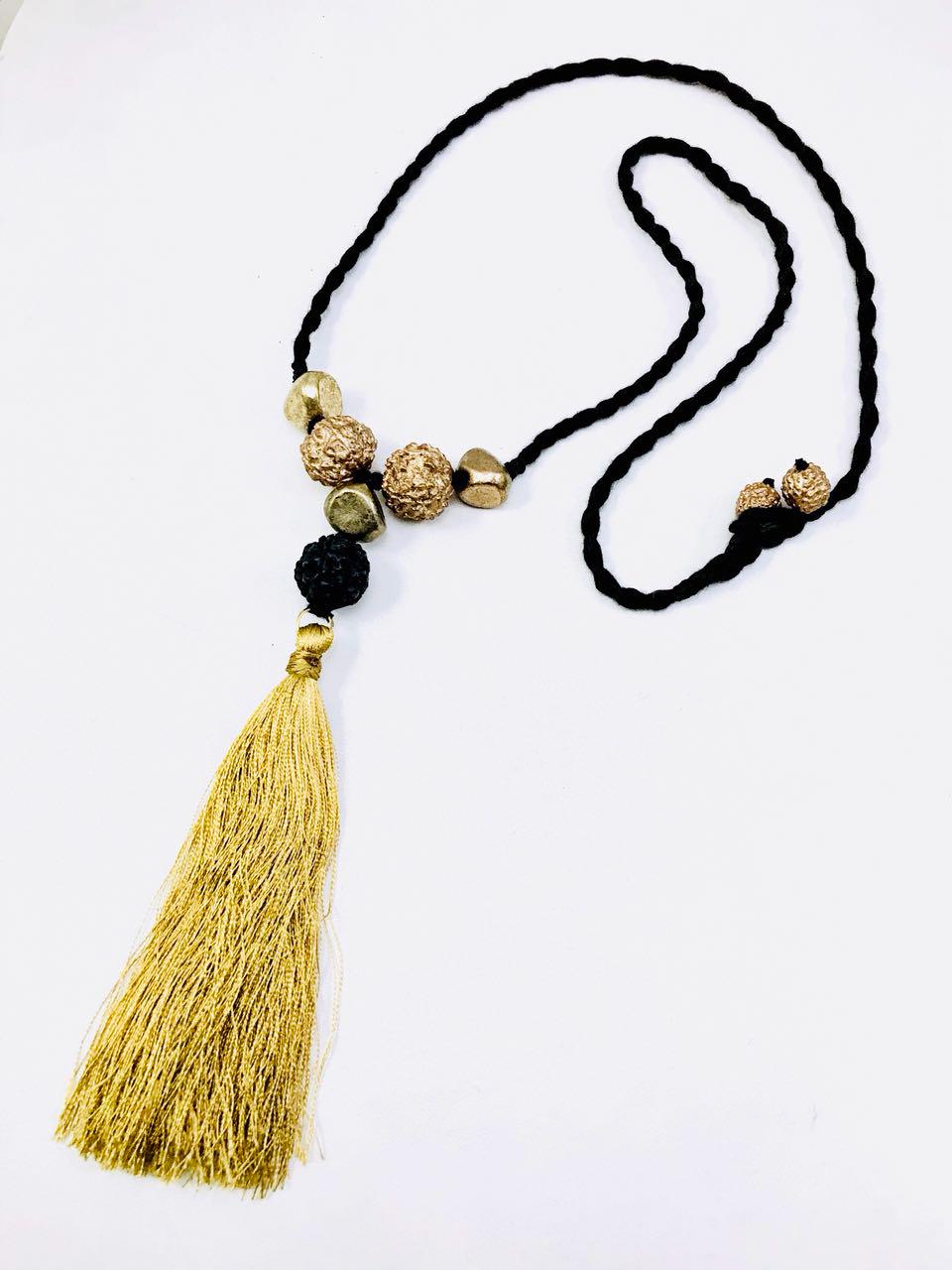 Hand painted natural Rudraksha neck piece with black tassel.