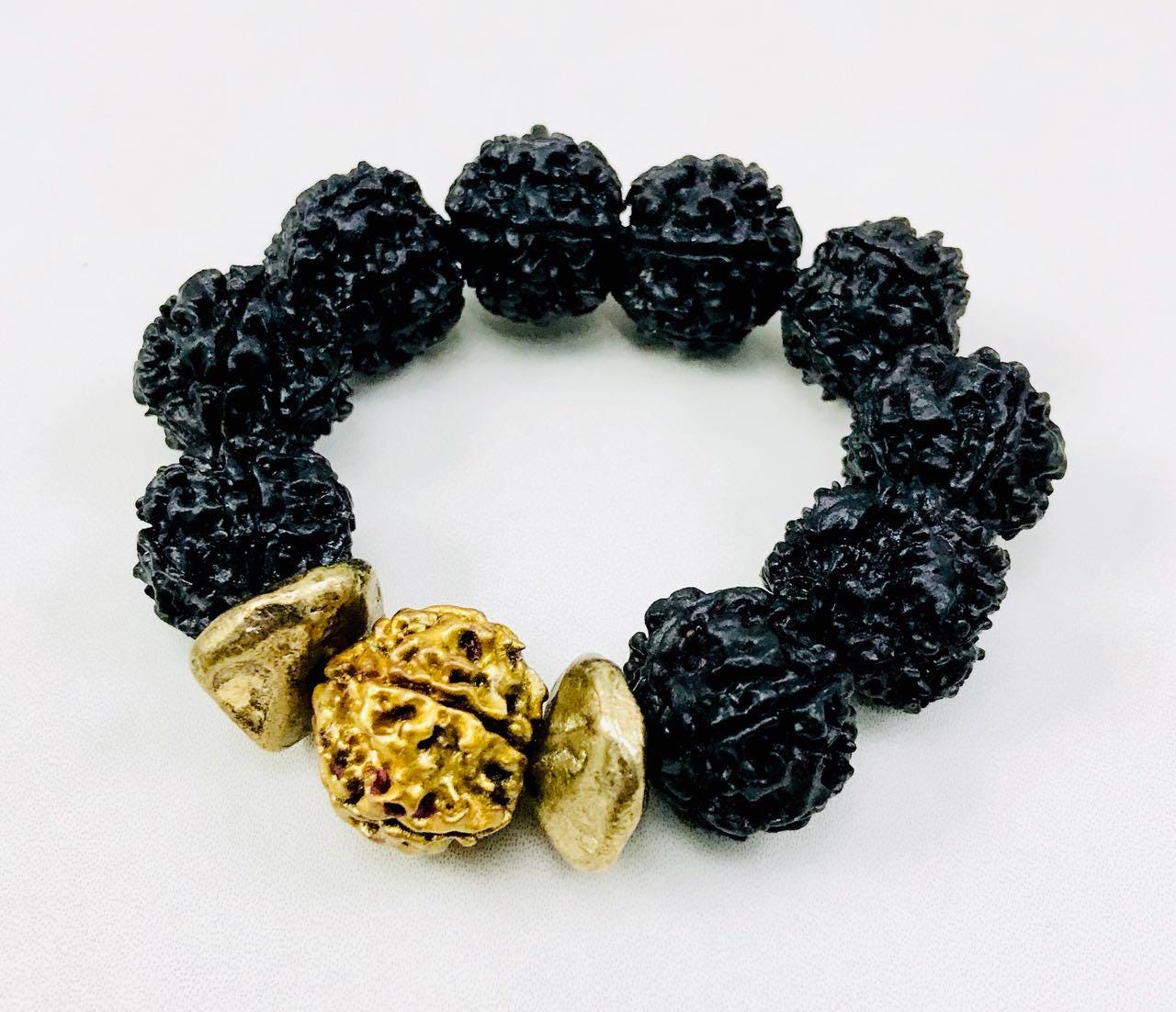 Stunning black and golden hand painted natural rudraksha bracelets. Hi-Fashion meets spirituality.