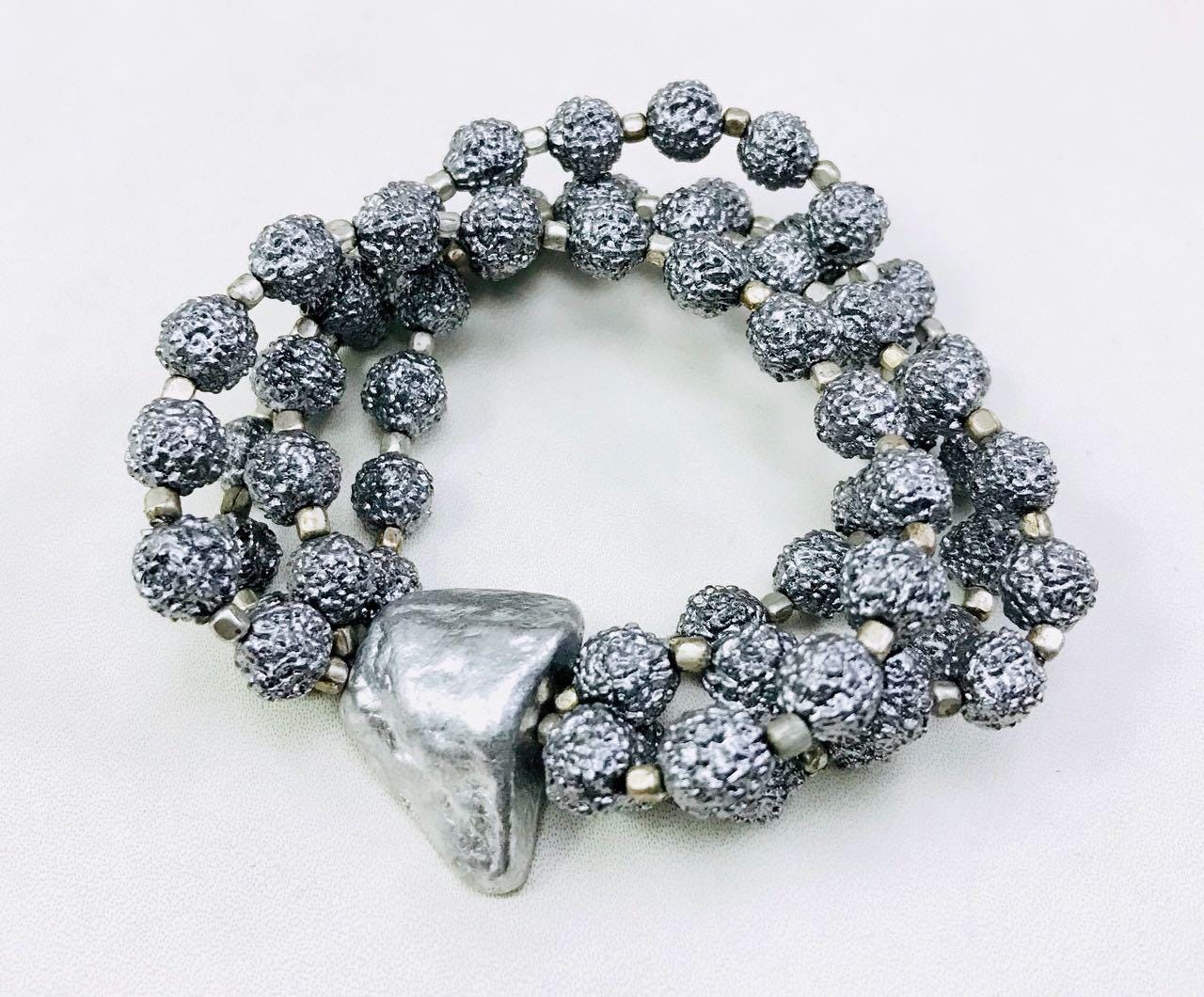 3 strand silver hand painted rudraksha bracelet.Hi-Fashion meets spirituality.