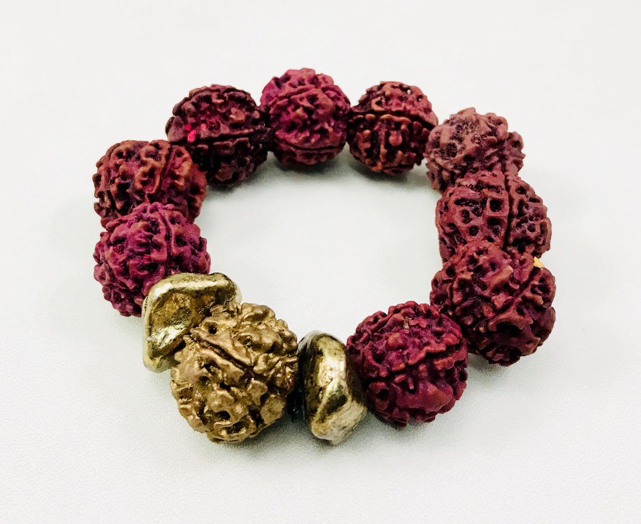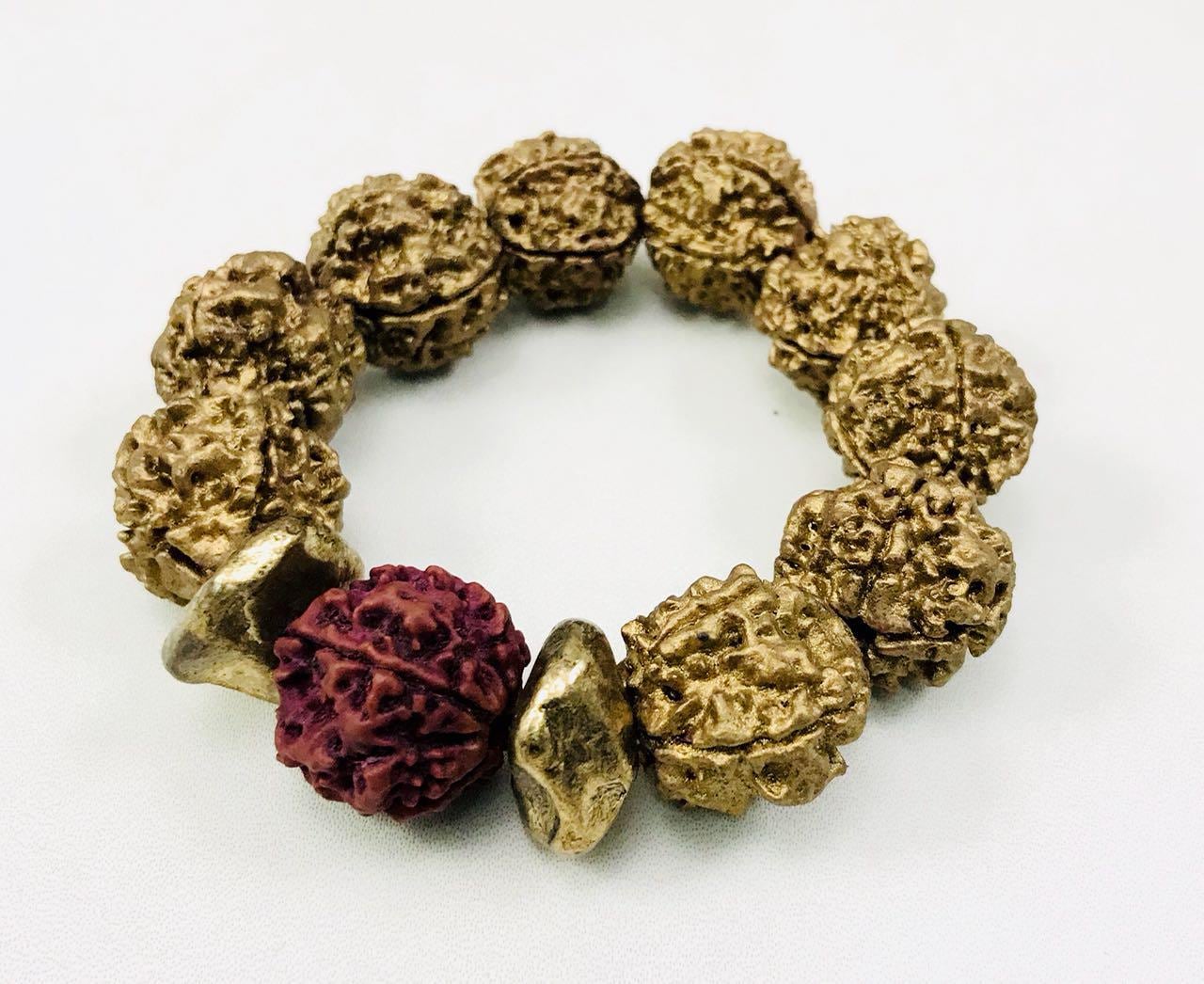 Gold combination hand painted rudraksha bracelet.Hi-Fashion meets spirituality.