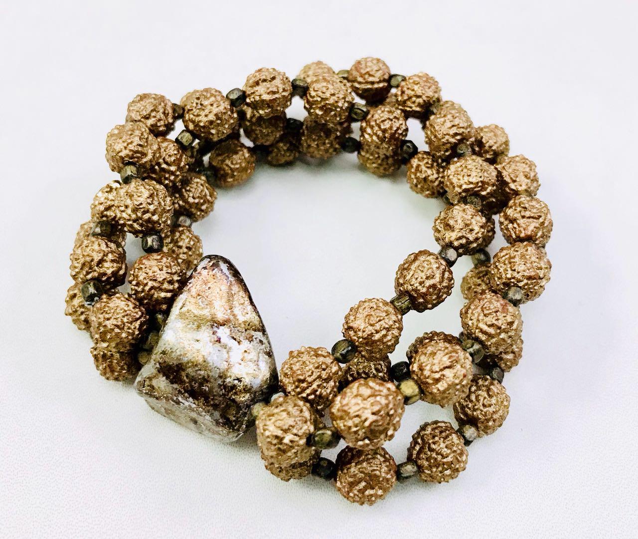 3 strand golden hand painted rudraksha bracelet.Hi-Fashion meets spirituality.