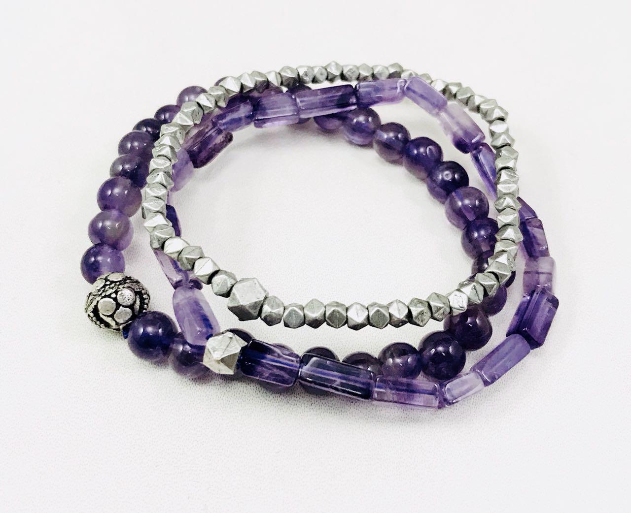 Amethyst and metal bead combination bracelets.