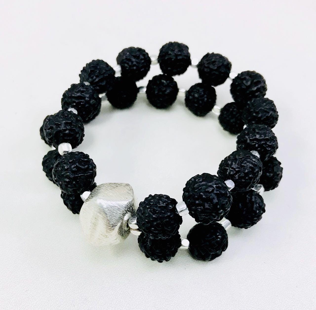 2 strand black and silver hand painted rudraksha bracelets.Hi-Fashion meets spirituality.