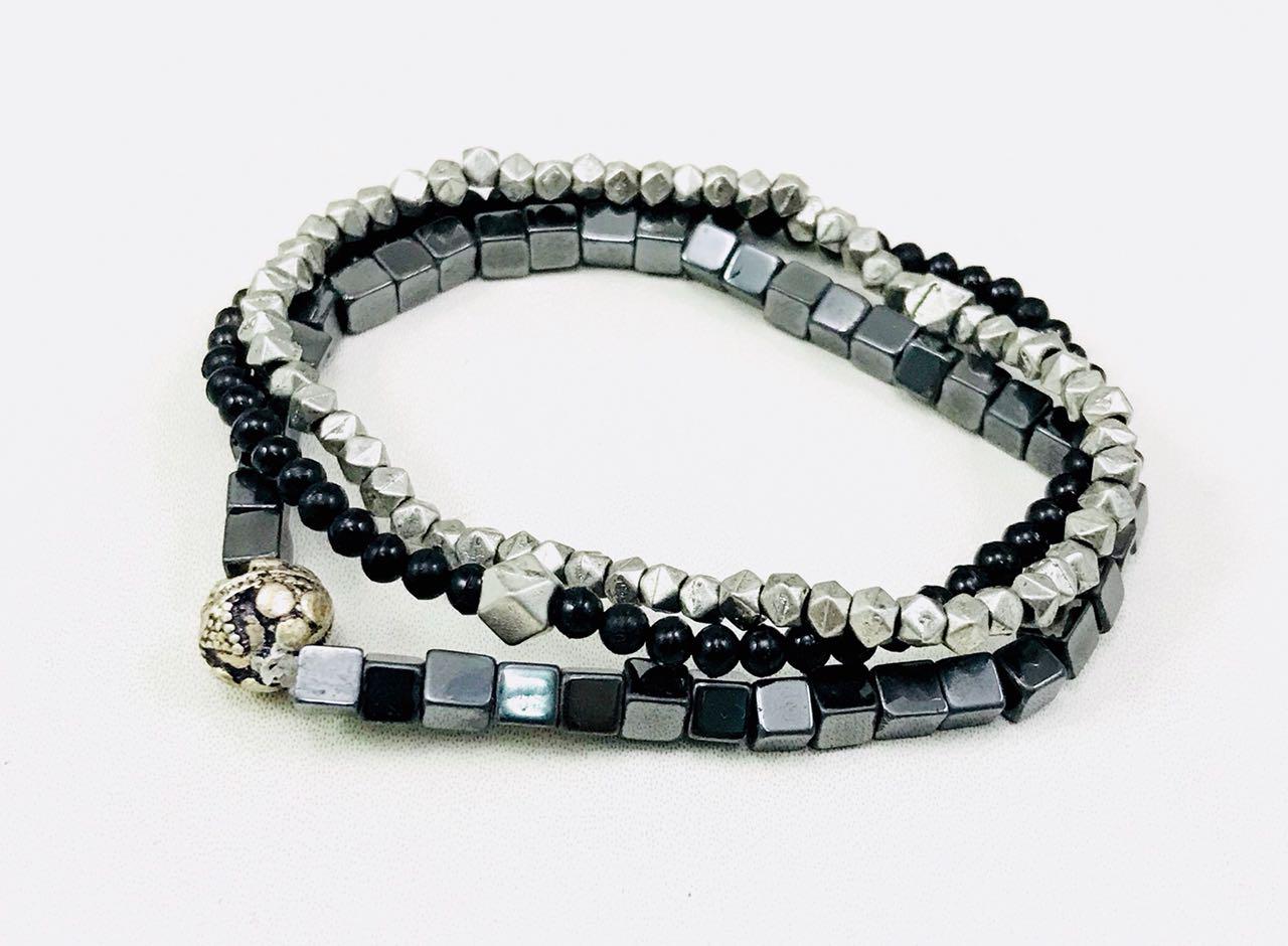 Hematite, metal and black bead combination bracelets.