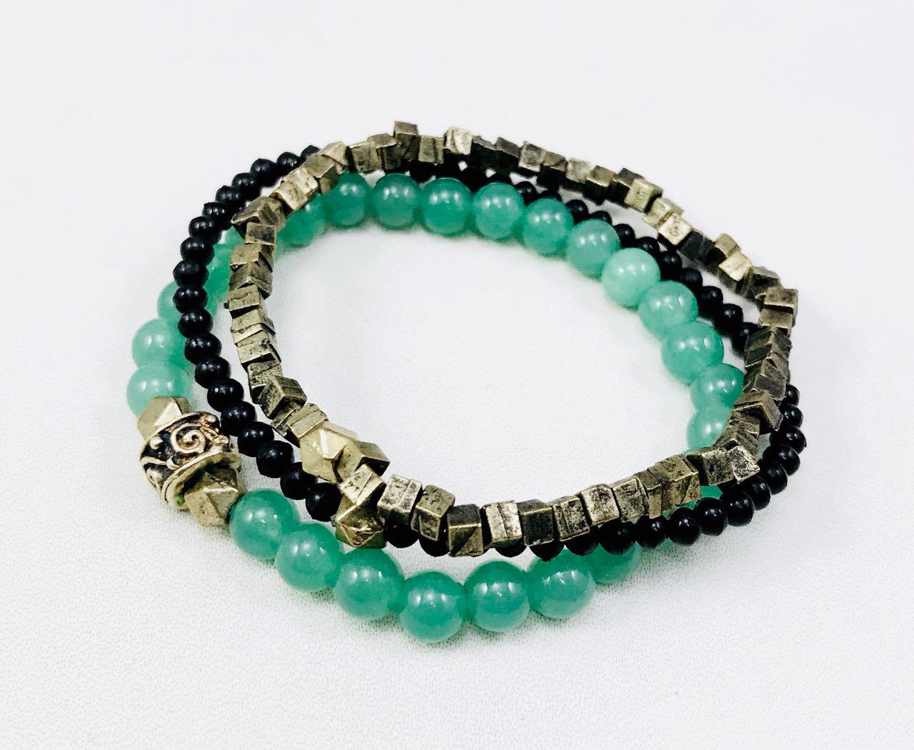 Jade, metal and black bead combination bracelets.