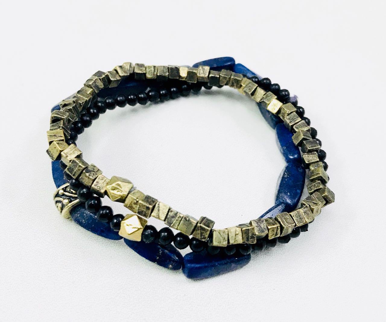 Lapiz lazuli, Metal and black bead combination bracelets.