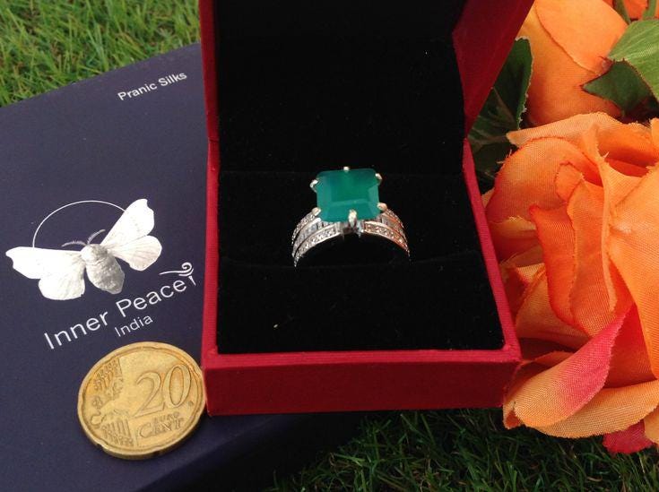 green aventurine semiprecious stone finger ring in American Diamond setting